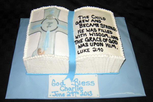 Make your loved one’s baptism, communion, christening, bar mitzvah, bat mitzvah or other religious ceremony even more memorable with a custom cake.